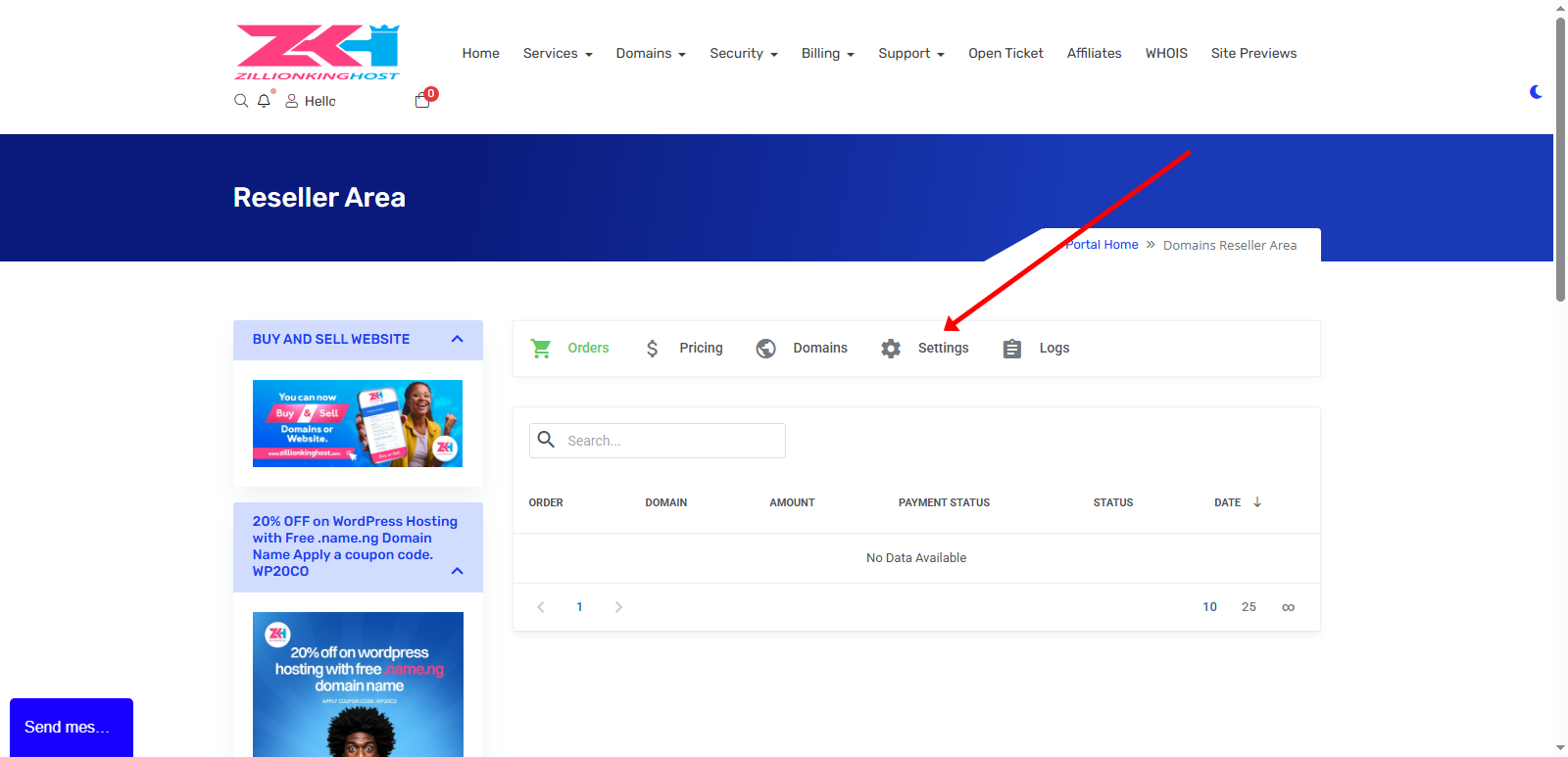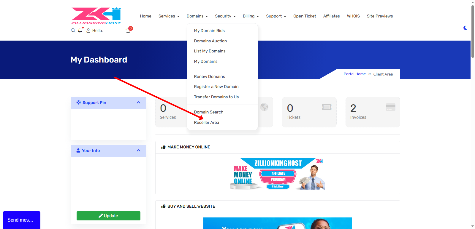 1. Log in to the ZILLIONKINGHOST Client Area.