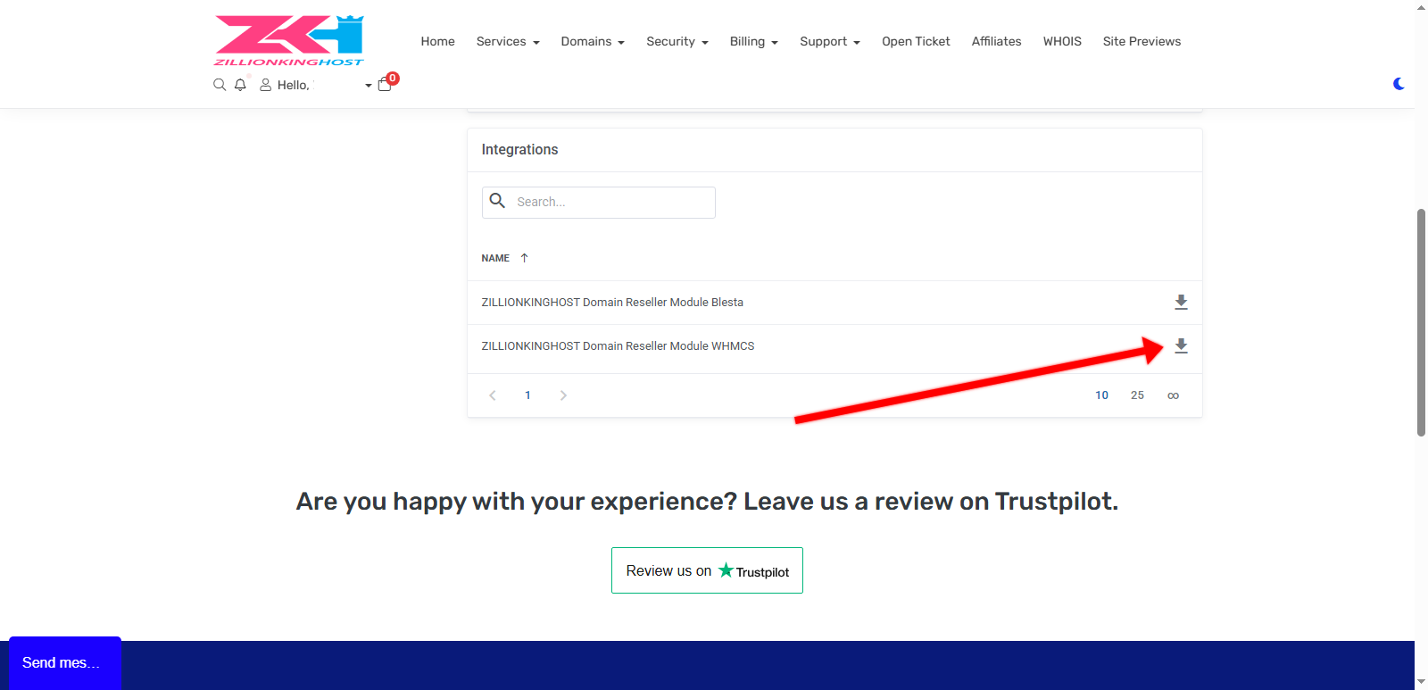 3. On the right side of “ZILLIONKINGHOST Domain Reseller Module WHMCS,” press download.
