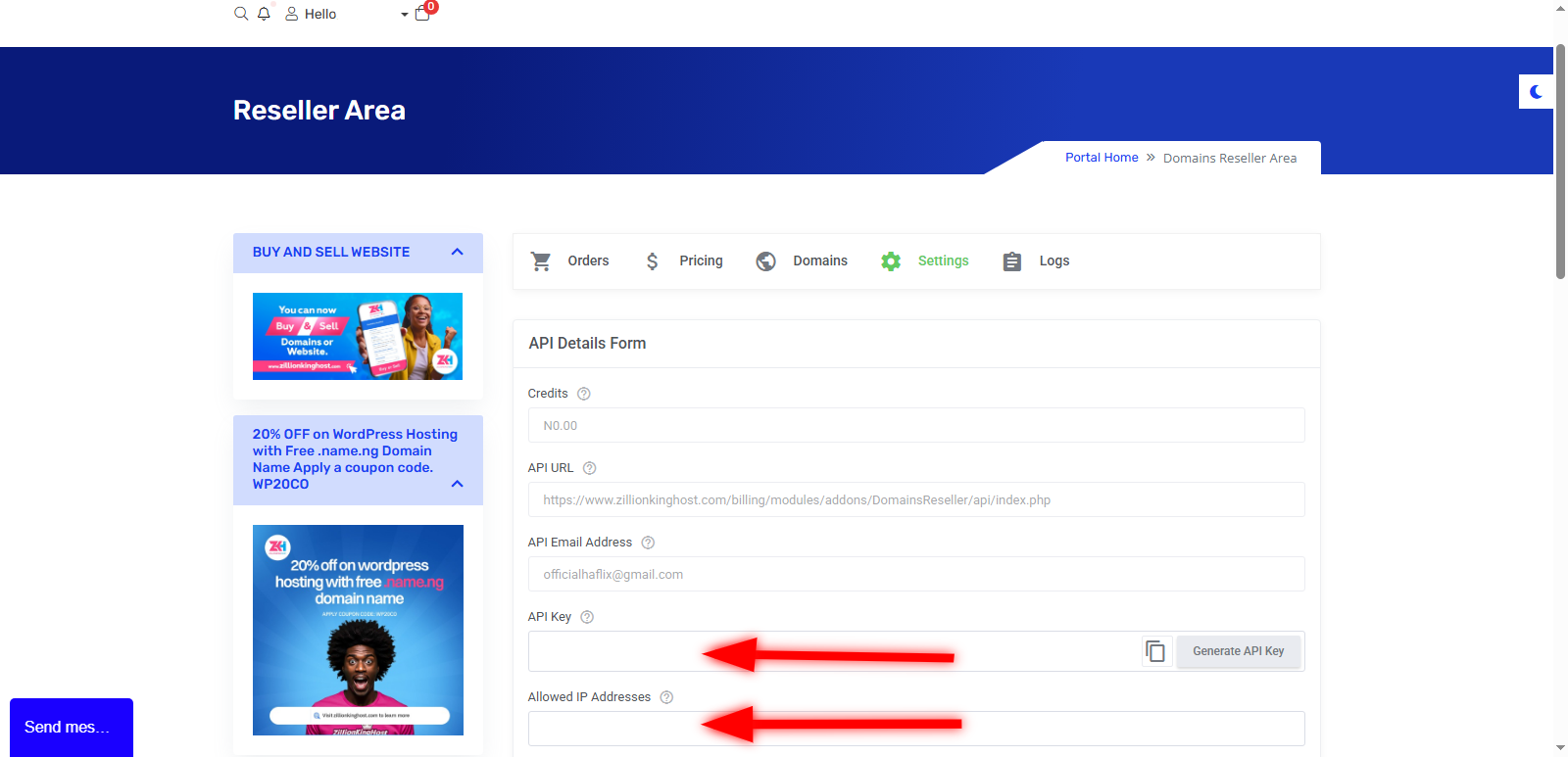 ZILLIONKINGHOST Domain Reseller for WHMCS Integration
