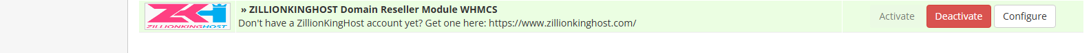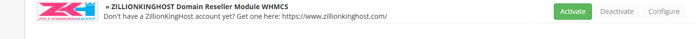 10. Find “ZILLIONKINGHOST Domain Reseller Module WHMCS” and press the “Activate” button on the right side.