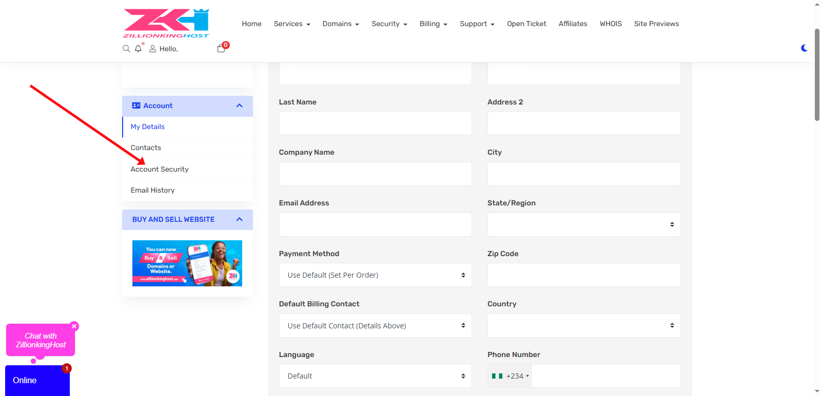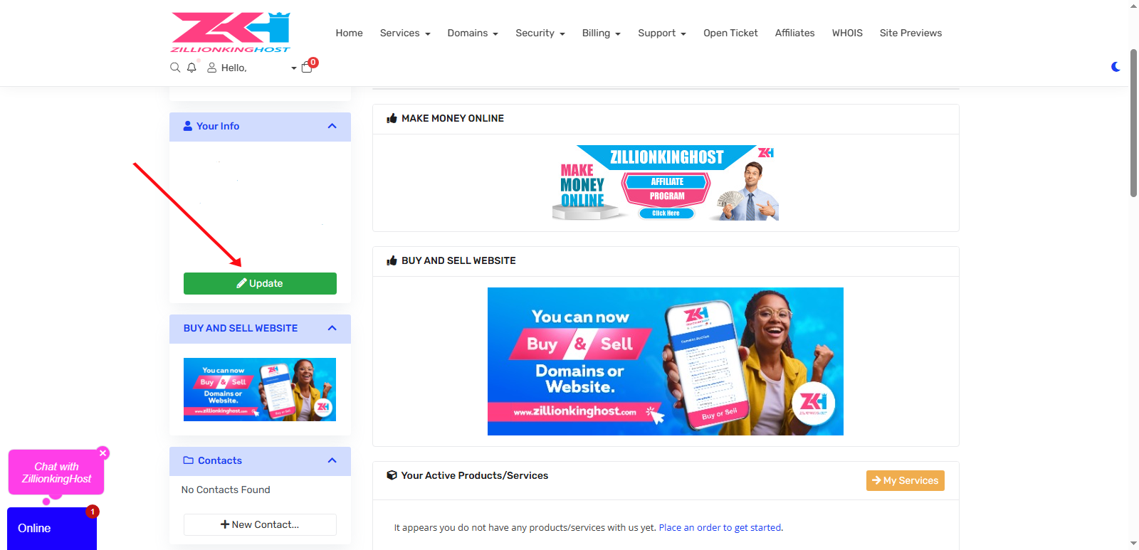 Step 1) Log in to your zillionkinghost account, Click on update.